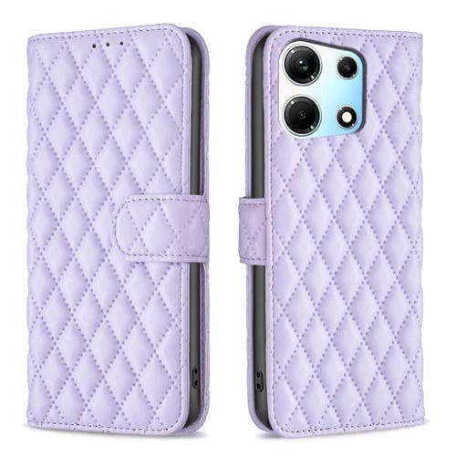 Funda de Cuero con Tapa para Infinix Hot 30 Play NFC Diamond Lattice (Púrpura)