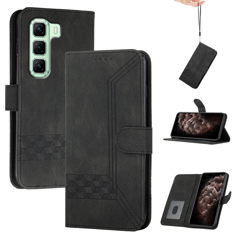 Funda de Cuero con Tapa y Tacto de Piel Cúbica para Infinix Hot 50 4G (Negra)