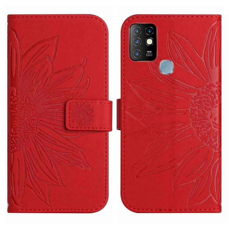 Funda de Cuero Flip para Infinix Hot 10 Skin Feel Sun Flower con Cordón (Rojo)