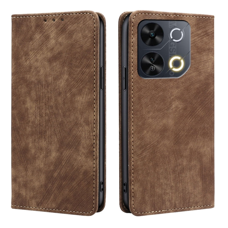 Funda de Cuero Magnética con Cepillo Antirrobo RFID para Teléfono Itel P65 (Marrón)