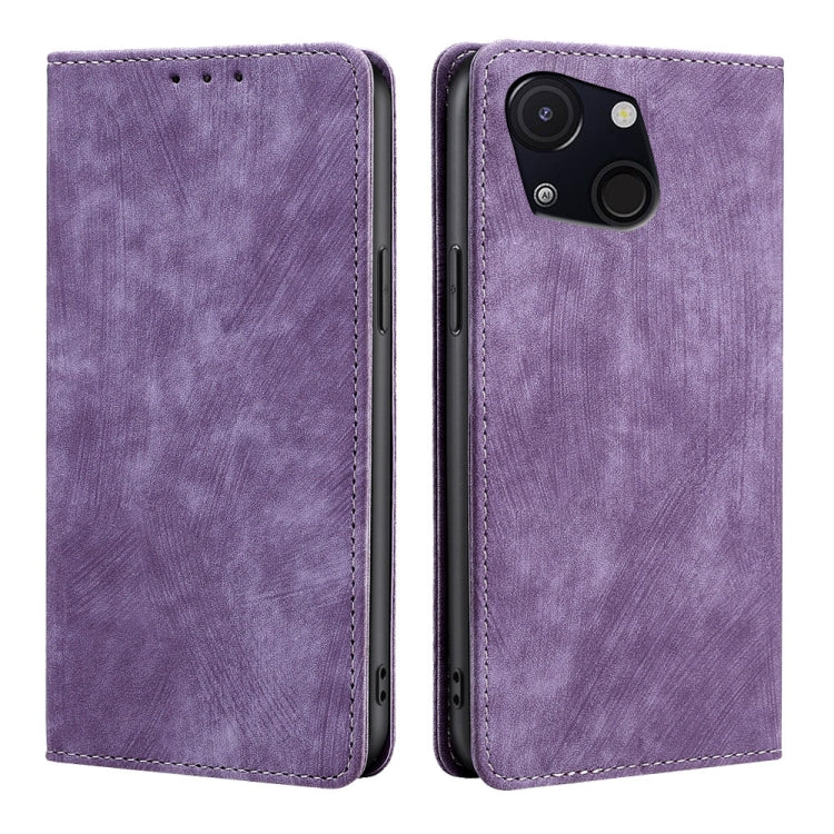 Funda de Cuero Magnética con Cepillo Antirrobo RFID para Itel A50C 4G (Morado)