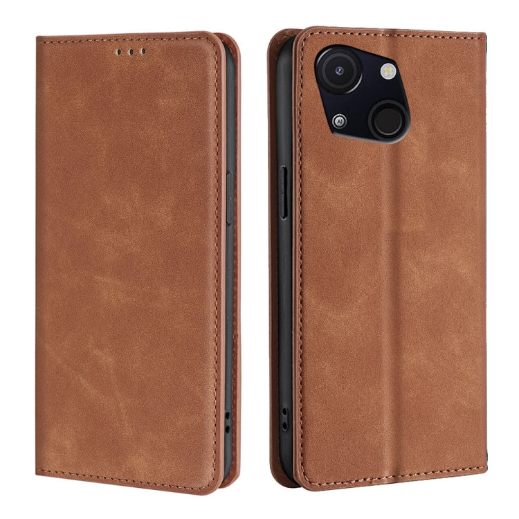 Funda de Piel Magnética para Teléfono Itel A50C 4G (Marrón Claro) con Tacto de Piel