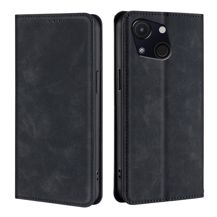 Funda de Cuero Magnética para Teléfono Itel A50C 4G con Tacto de Piel (Negra)