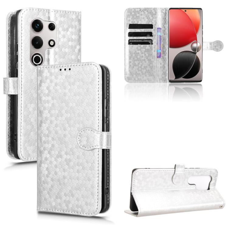 Funda de Cuero para Itel S25 Ultra con Textura de Puntos en Panal (Plateada)