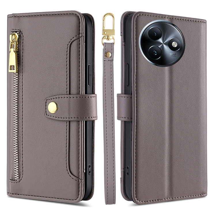 Funda de Cuero con Cremallera y Diseño de Oveja para Teléfono Itel S24 4G (Gris)
