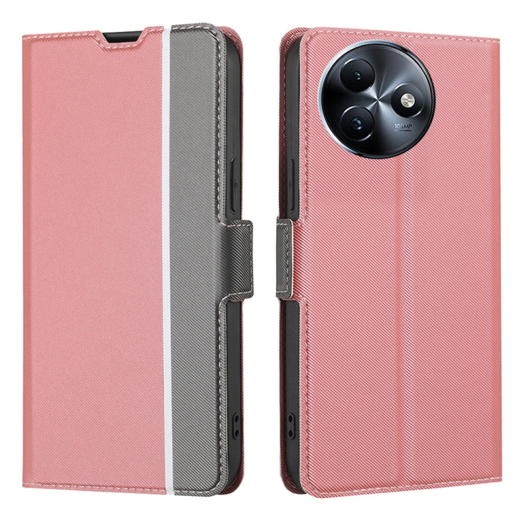 Funda de Cuero Itel S24 4G con Botones Laterales y Textura de Sarga (Rosa)