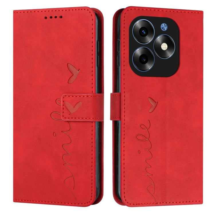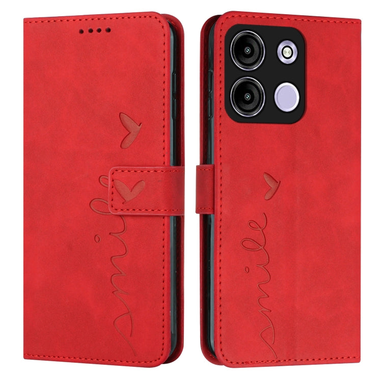 Funda para Itel A60S Skin Feel Heart de Cuero en Relieve con Cordón Largo (Rojo)