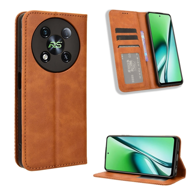 Funda para Teléfono Itel Rs4 de Cuero con Textura Retro y Hebilla Magnética (Marrón)