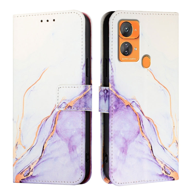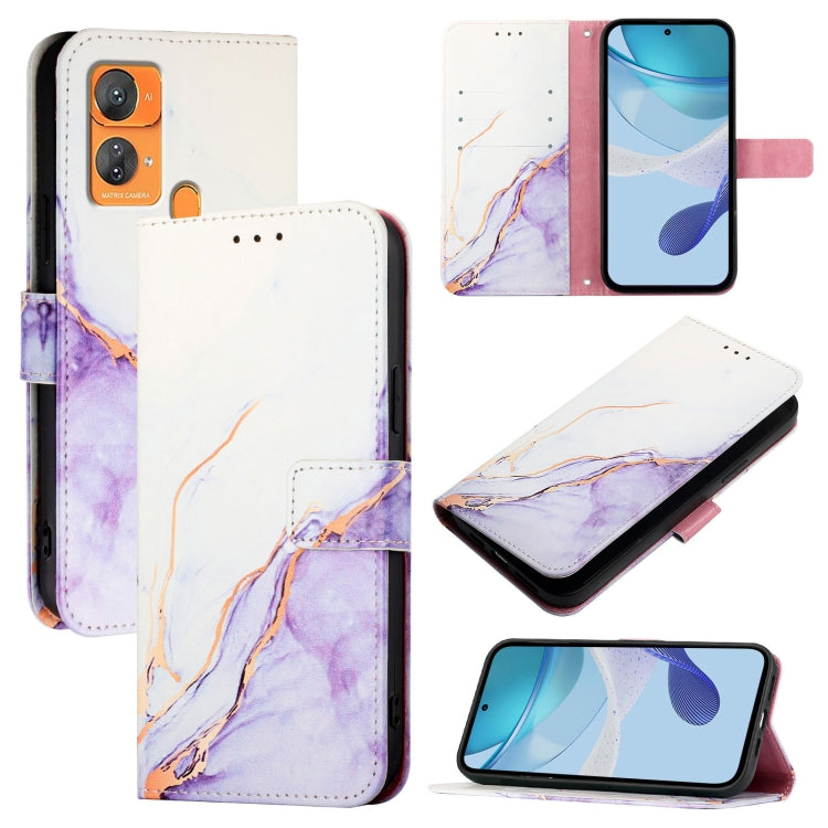 Funda para Teléfono Itel S24 Pt003 Cuero con Tapa y Patrón Mármol (Blanco y Morado)