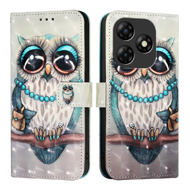 Funda para Teléfono Itel S23 de Cuero con Tapa Horizontal y Pintura 3D (Búho Gris)