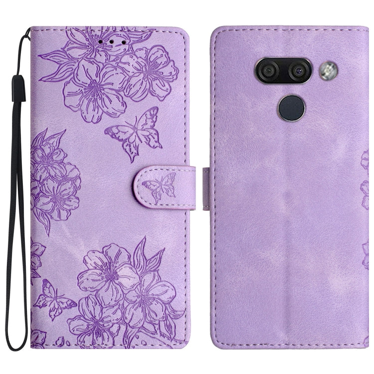 Funda para LG K61 Cherry Blossom Butterfly Skin Feel de PU en Relieve (Púrpura)
