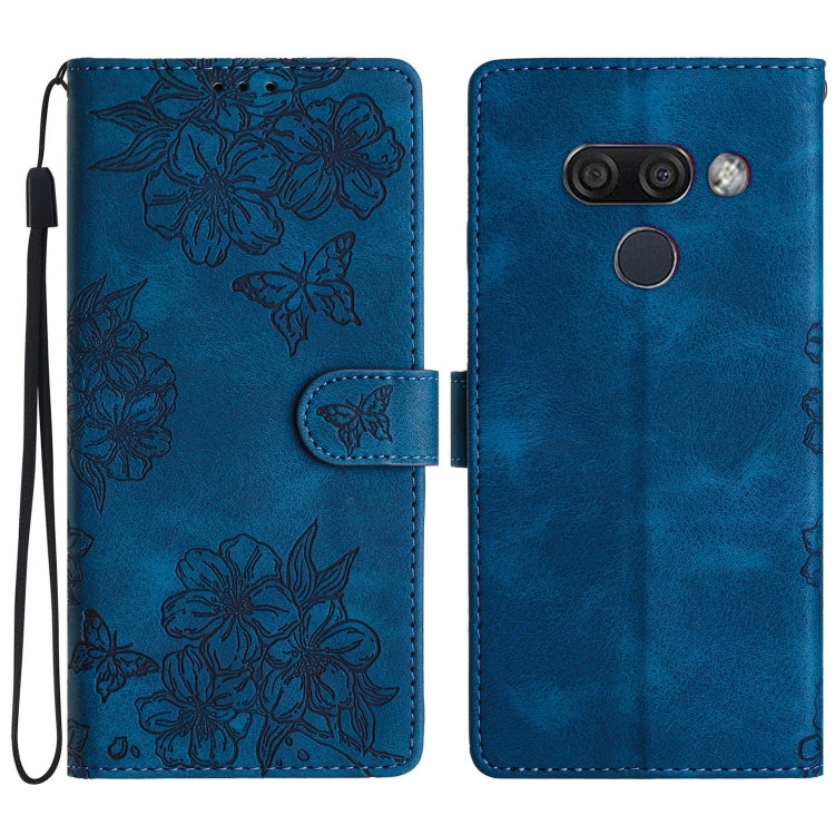 Funda para LG K50 Cherry Blossom Butterfly Skin Feel de PU en Relieve (Azul)