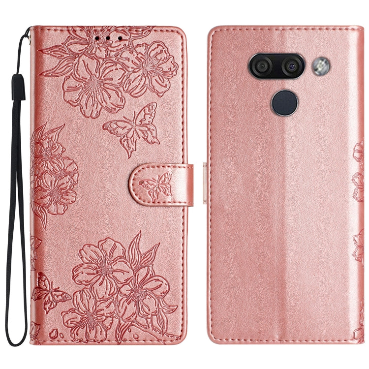 Funda para LG K50 Cherry Blossom Butterfly Skin Feel de PU en Relieve (Oro Rosa)