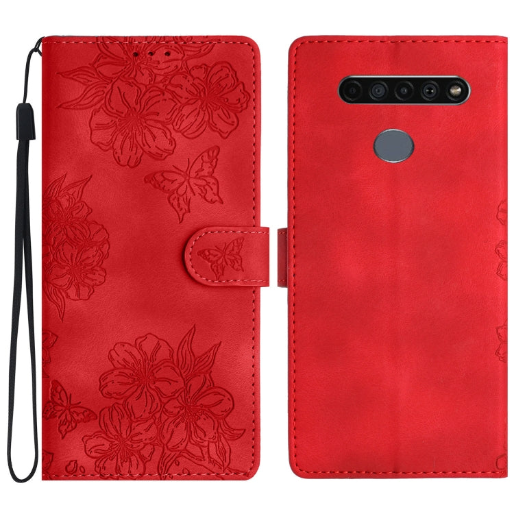 Funda para LG K61 Cherry Blossom Butterfly Skin Feel de PU en Relieve (Rojo)