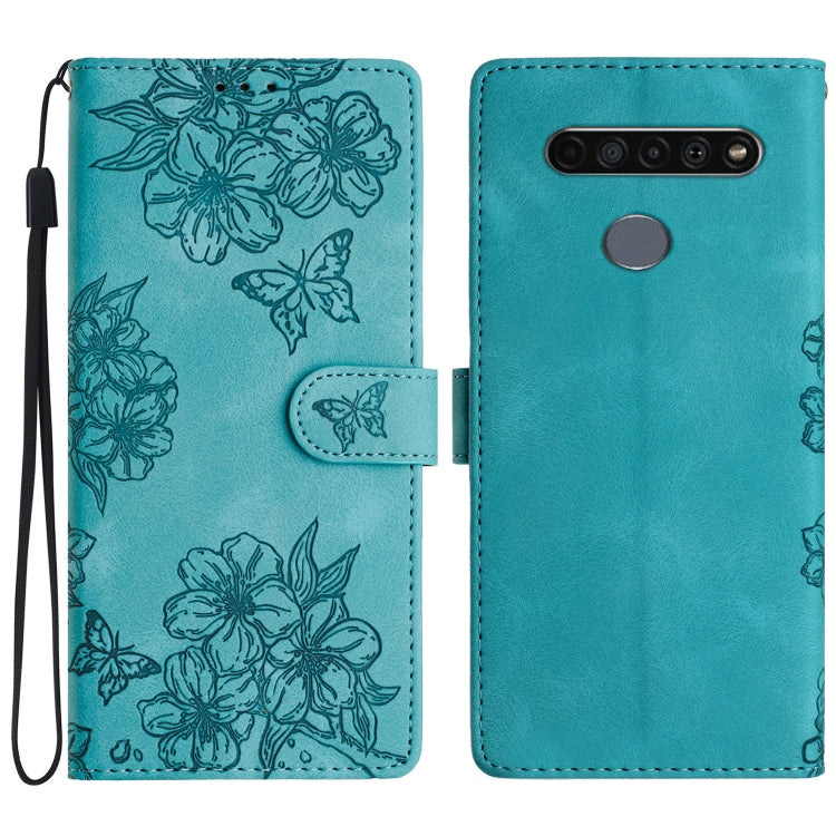 Funda para LG K61 Cherry Blossom Butterfly Skin Feel de PU en Relieve (Azul)