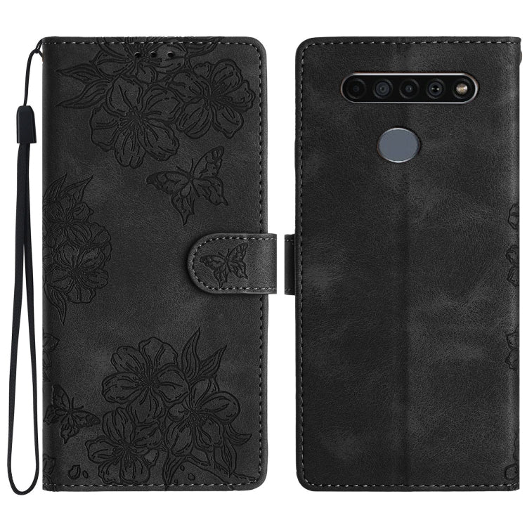 Funda para teléfono LG K61 Cherry Blossom Butterfly Skin Feel de PU en relieve (Negro)