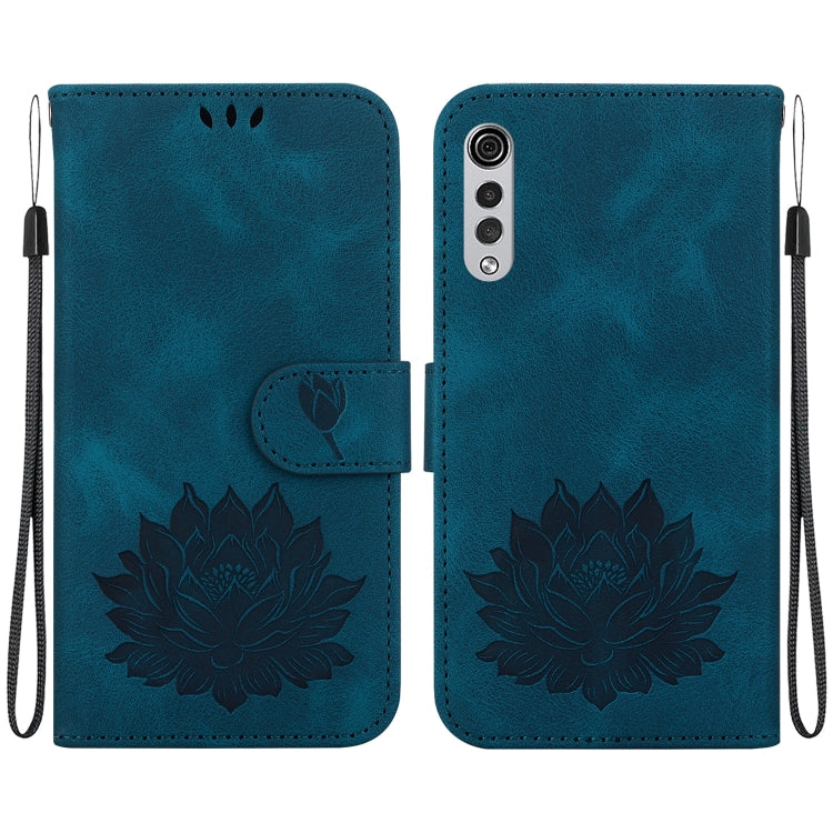 Funda de Cuero con Relieve de Loto para LG Velvet / Velvet 5G / G9 (Azul Oscuro)