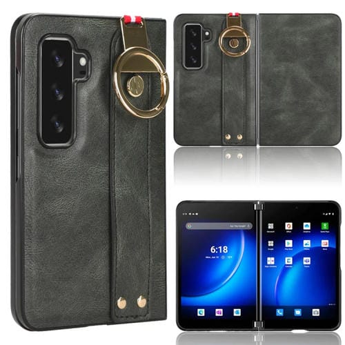 Funda para Microsoft Surface Duo con Wristband de Cuero y Tapa Trasera (Negro)