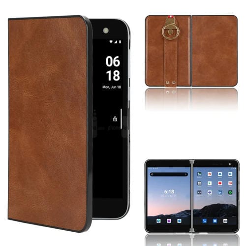 Muñequera Funda Trasera de Cuero para Microsoft Surface Duo2 Teléfono (Marrón)