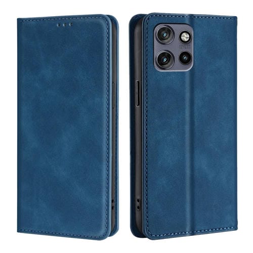 Funda de Cuero Magnética con Tacto de Piel para Motorola Edge 50 Neo 5G (Azul)