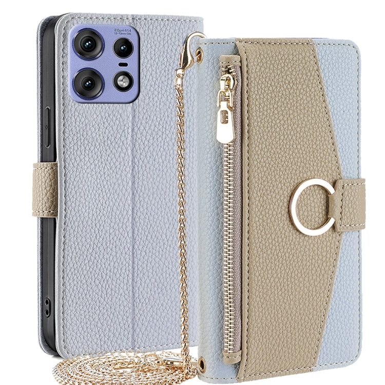 Funda de Cuero con Textura de Lichi para Motorola Edge 50 Pro 5G (Azul)