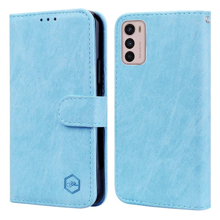 Funda para Motorola Moto G30 G10 G20 PU + TPU Textura Piel Aceitosa (Azul Claro)
