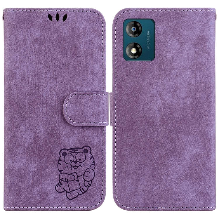 Funda de Cuero en Relieve para Motorola Moto E13 Little Tiger (Púrpura)