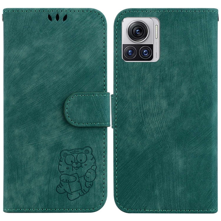 Funda para Motorola Moto X30 Pro 5G de Cuero con Relieve Little Tiger (Verde)