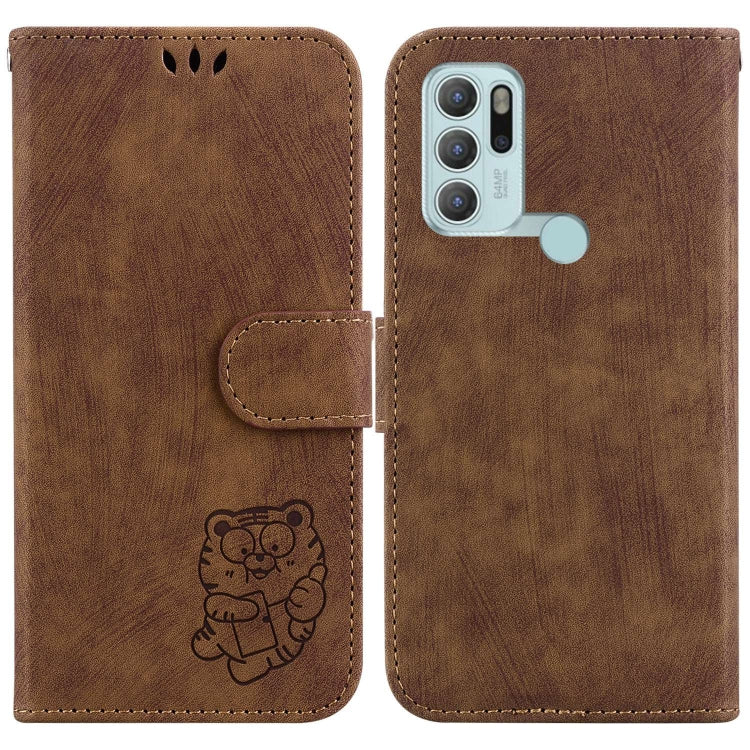 Funda de Cuero en Relieve para Motorola Moto G60S Little Tiger (Marrón)