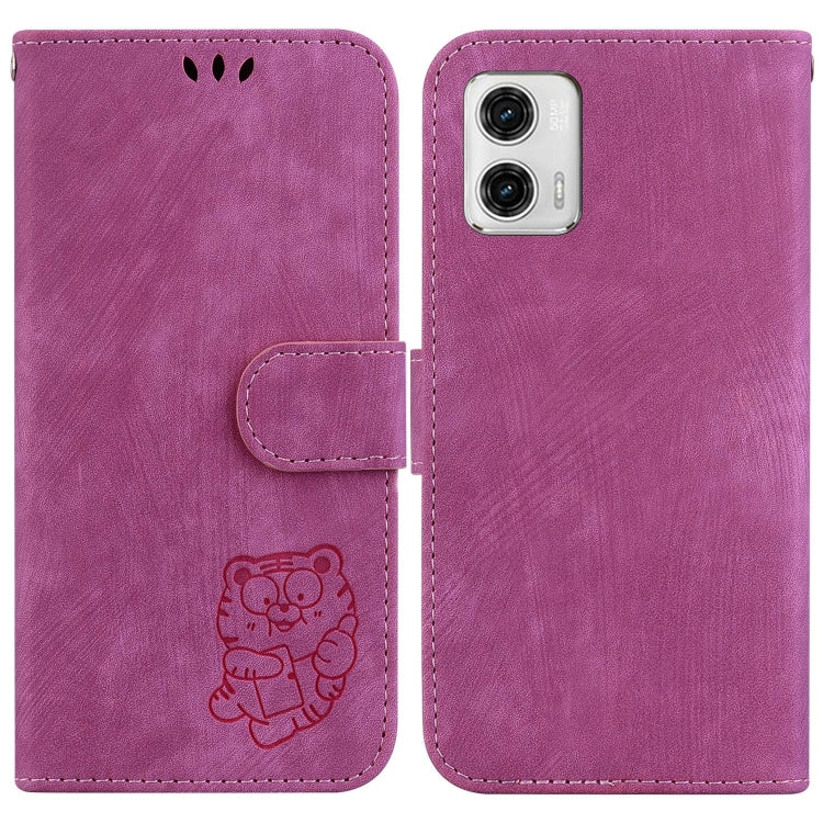 Funda de Cuero para Motorola Moto G73 con Relieve Little Tiger (Rojo Rosa)