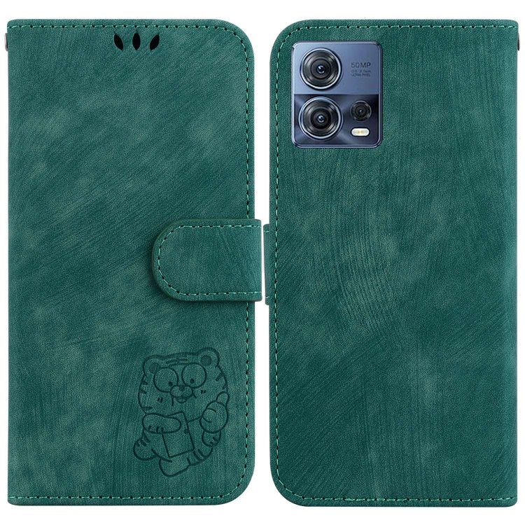 Funda para Motorola Moto S30 Pro 5G de Cuero con Relieve Little Tiger (Verde)