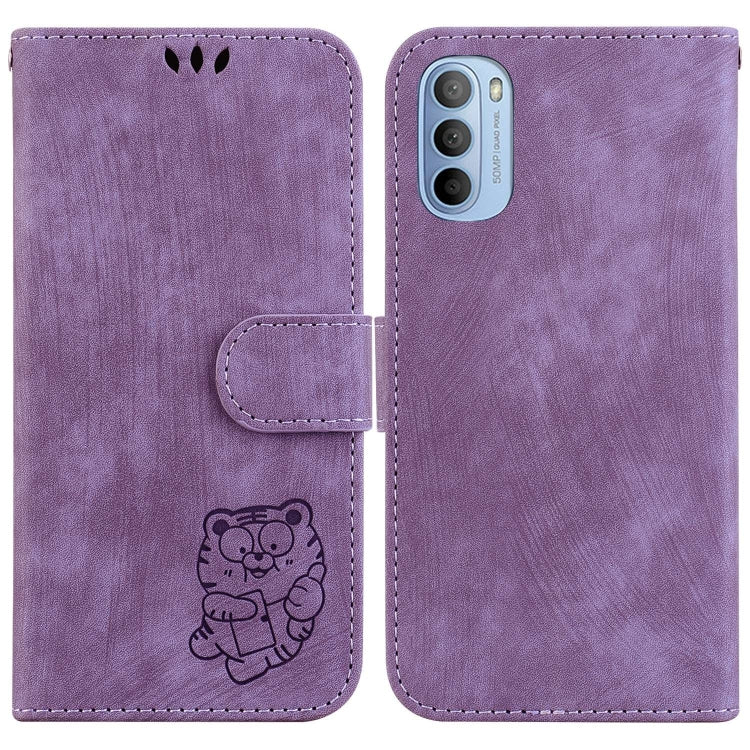 Funda de Cuero para Motorola Moto G52J Jp Little Tiger en Relieve (Púrpura)