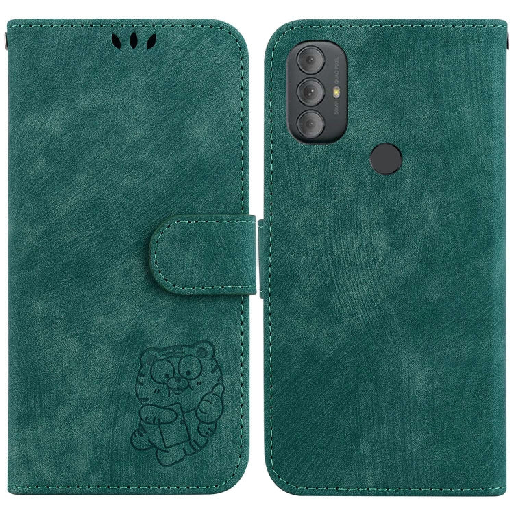 Funda para Motorola Moto G Power 2022 de Cuero con Relieve Little Tiger (Verde)