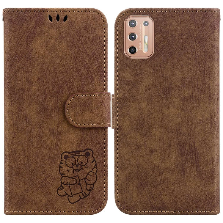 Funda de Cuero para Motorola Moto G9 Power Little Tiger en Relieve (Marrón)