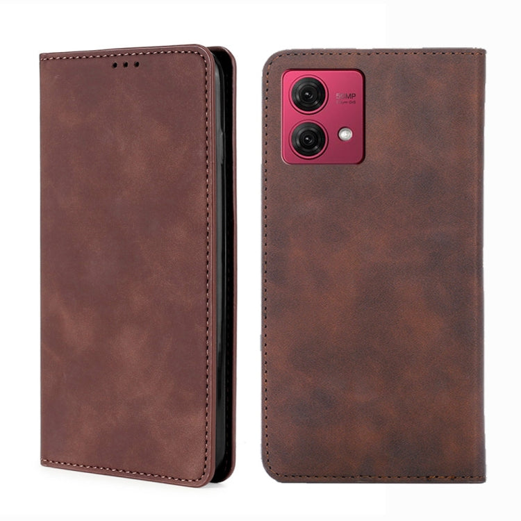Funda de Cuero Magnética Skin Feel para Motorola Moto G84 5G (Marrón Oscuro)
