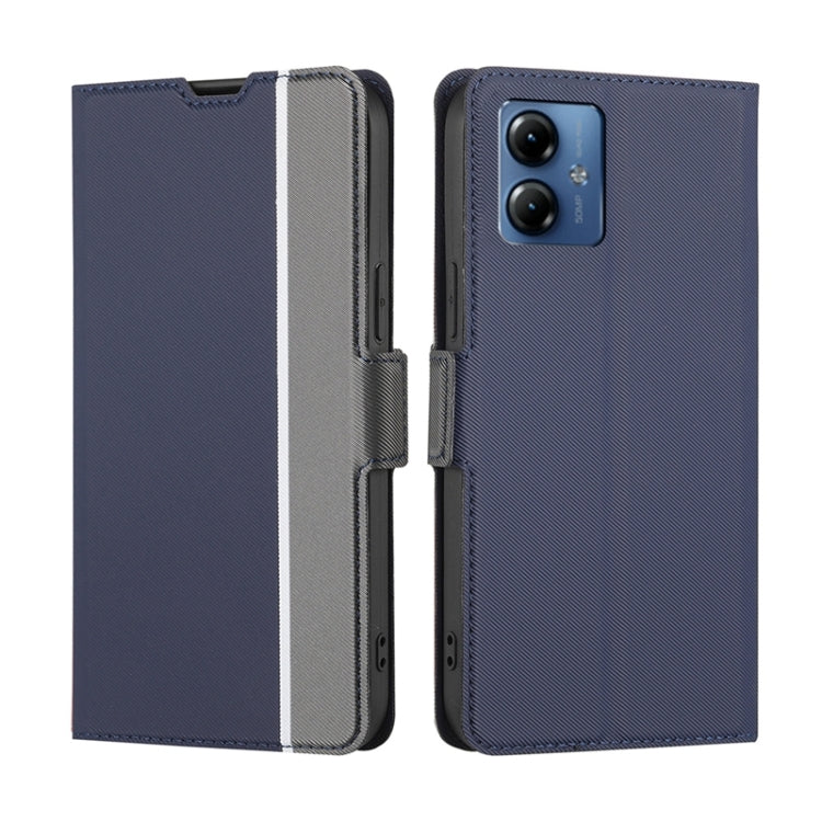 For Motorola Moto G14 4G Twill Texture Side Button Leather Phone Case (Blue)