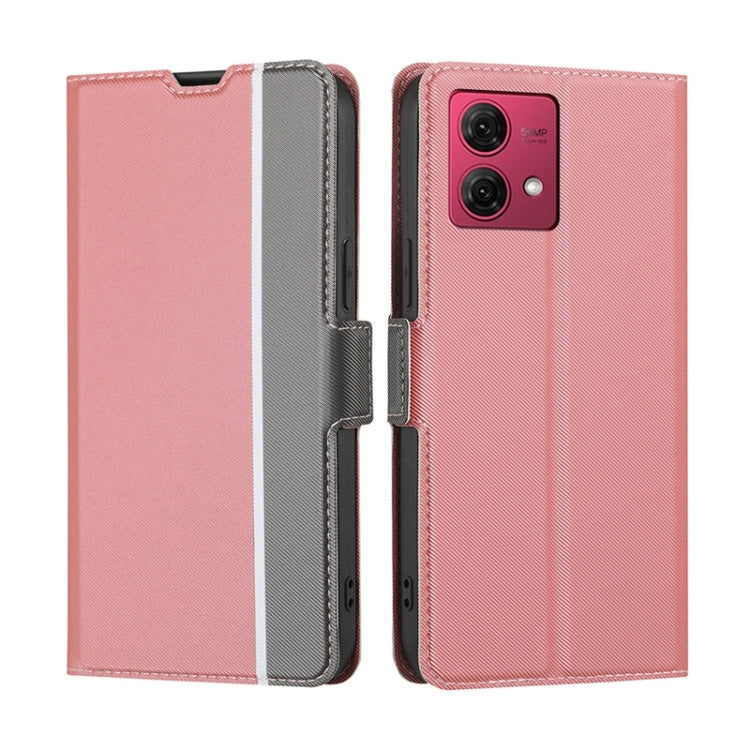 For Motorola Moto G84 5G Twill Texture Side Button Leather Phone Case(Pink)