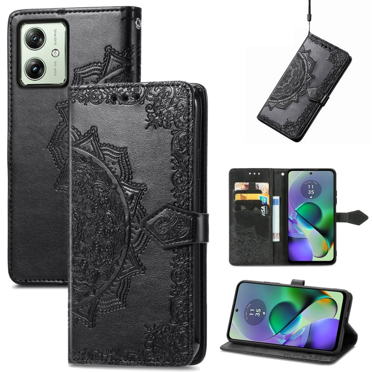 Funda para Motorola G54 5G de Cuero con Relieve Flor de Mandala (Negro)