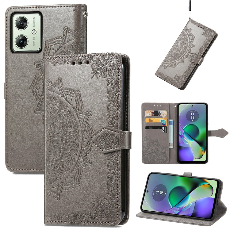 Funda para Motorola G54 5G de Cuero con Relieve de Flor de Mandala (Gris)