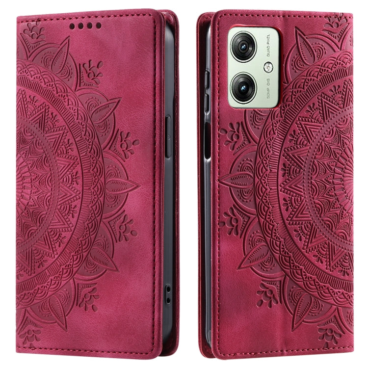 Funda de Cuero Magnética Totem para Motorola Moto G54 con Relieve (Rojo)