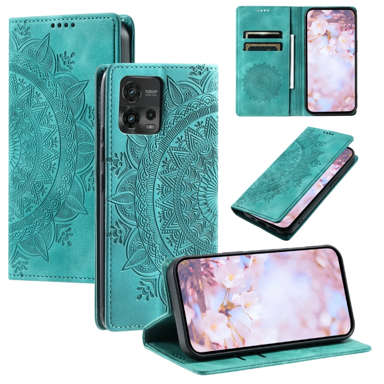 Funda de Cuero Magnética Totem para Motorola Moto G72 en Relieve (Verde)
