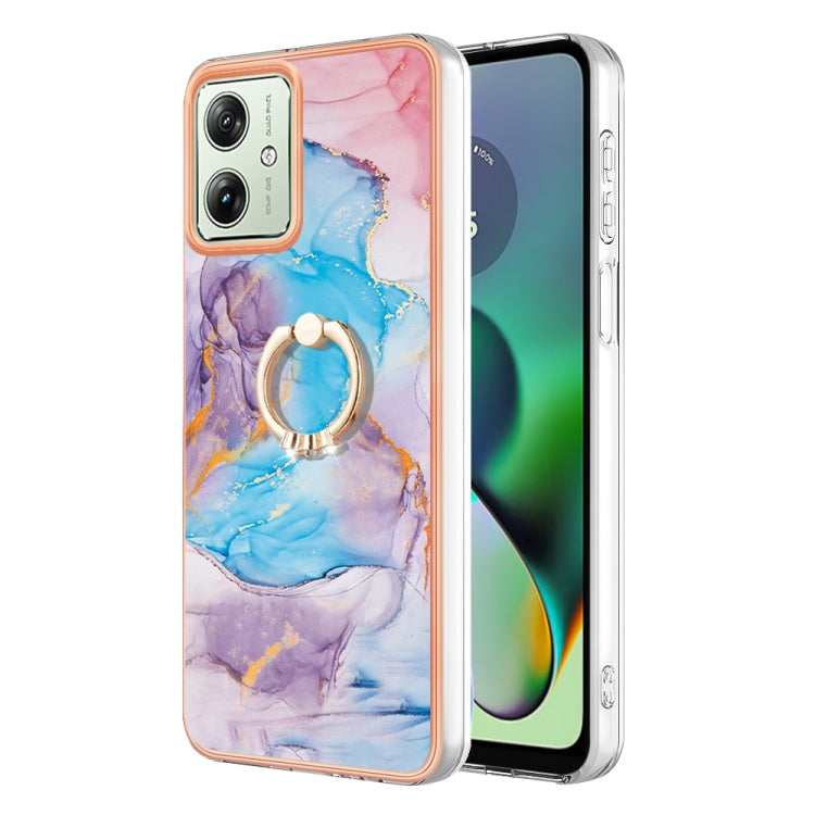 Funda para Motorola Moto G14 Imd TPU con Galvanoplastia y Anillo (Mármol Azul)