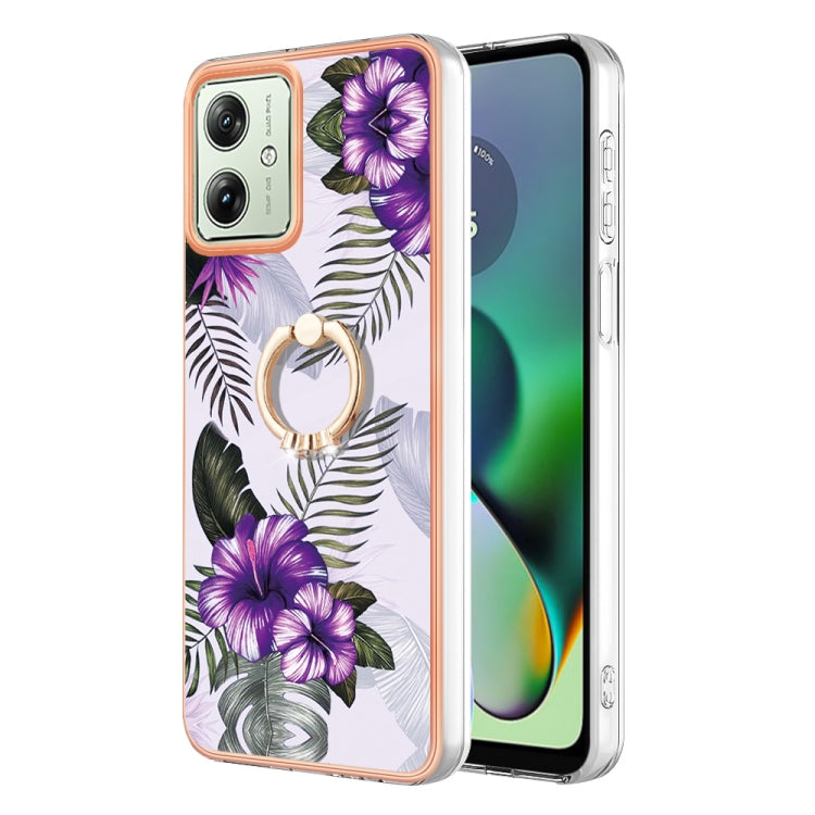 Funda para Motorola Moto G14 Imd TPU con Galvanoplastia y Anillo (Flor Púrpura)