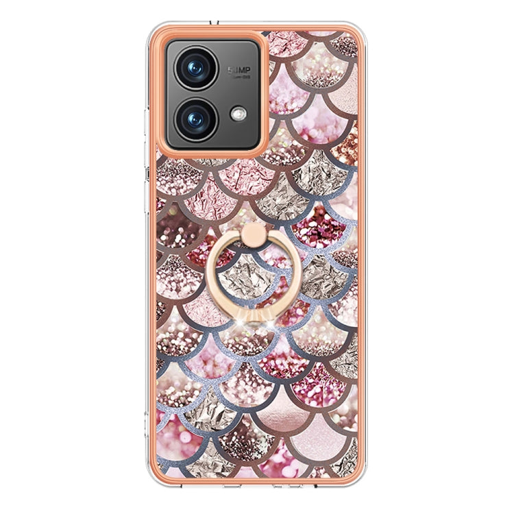 Funda para Motorola Moto G84 TPU con Galvanoplastia y Anillo (Escamas Rosadas)