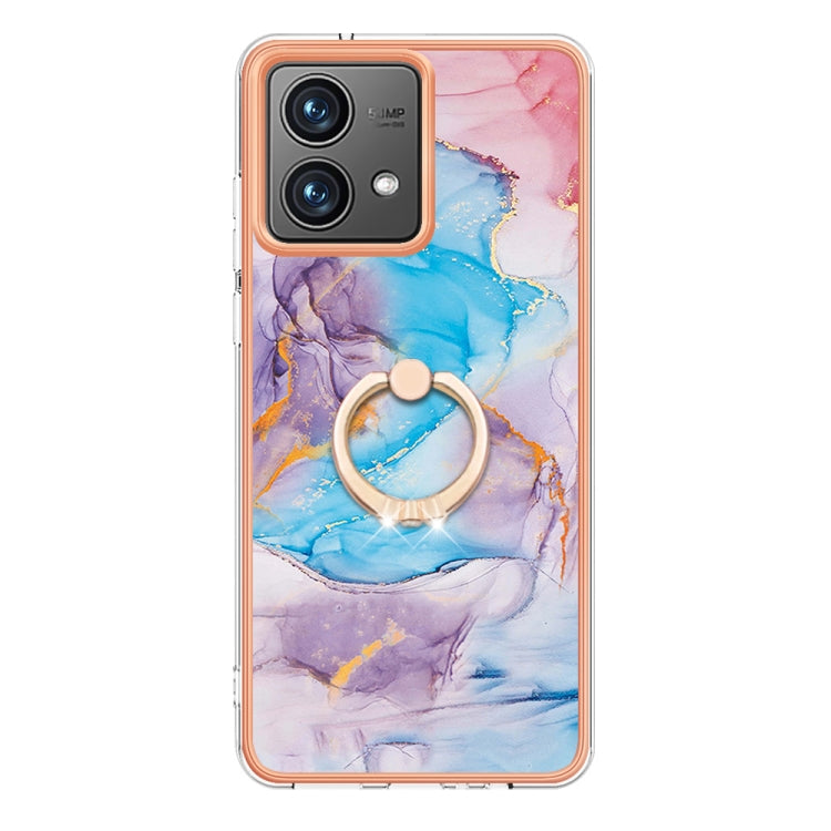 Funda para Motorola Moto G54 IMD TPU con Galvanoplastia y Anillo (Mármol Azul)