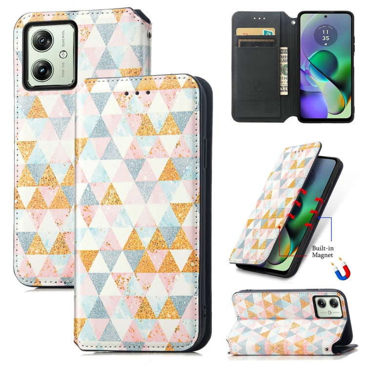 Funda de Cuero Magnética Caseneo para Motorola Moto G54 5G Colorida (Rombo)
