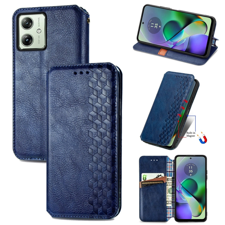 Funda de Cuero Magnético Prensado para Motorola Moto G54 5G (Azul) Cubic Grid