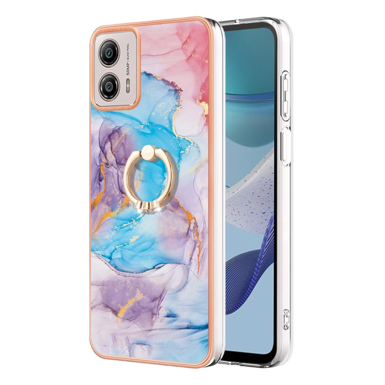 Funda TPU Galvanoplastia IMD con Anillo para Motorola Moto G53 5G (Mármol Azul)