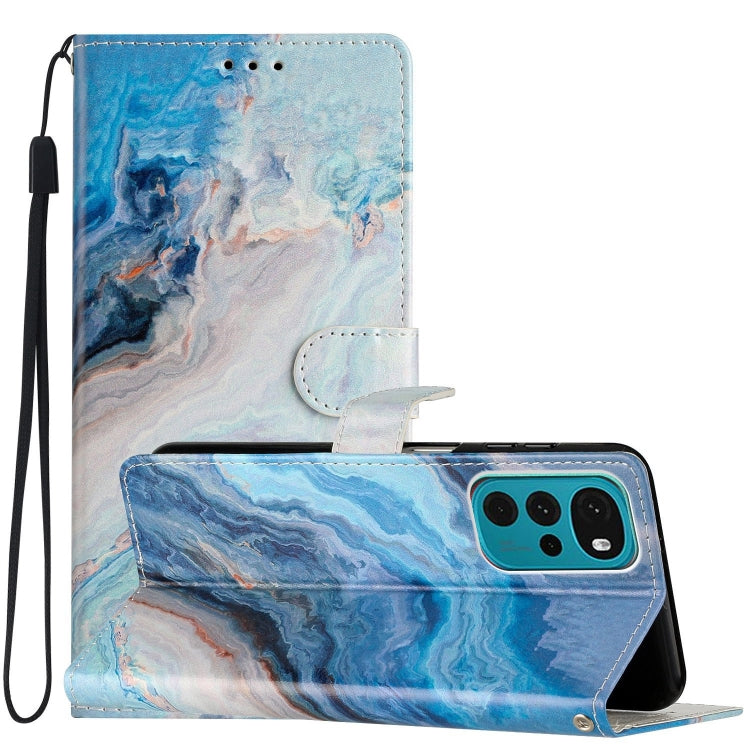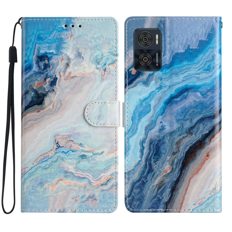 Estuche para Motorola Moto E22 de Cuero con Dibujo Coloreado Mármol Azul