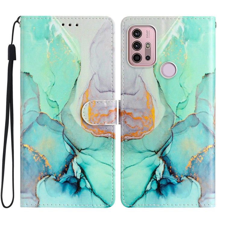 Estuche de Cuero para Motorola Moto G20 con Dibujo Coloreado Mármol Verde